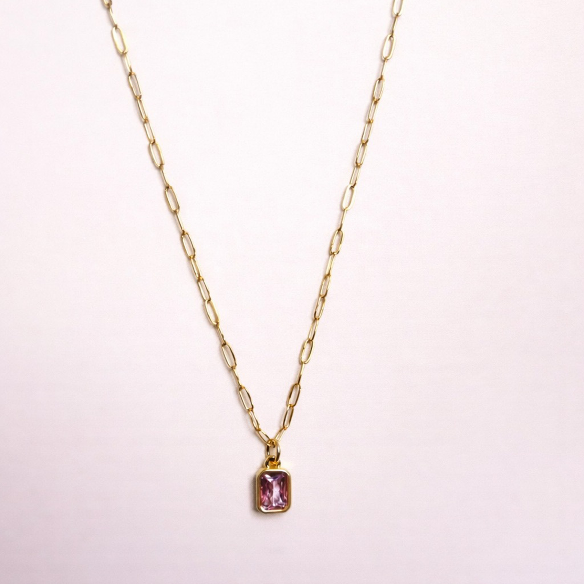 Simple, Dainty, Everyday. The Blushing Necklace features a blush pink pendant on our classic Alana chain. Perfect to add a pop of color on a timeless piece.