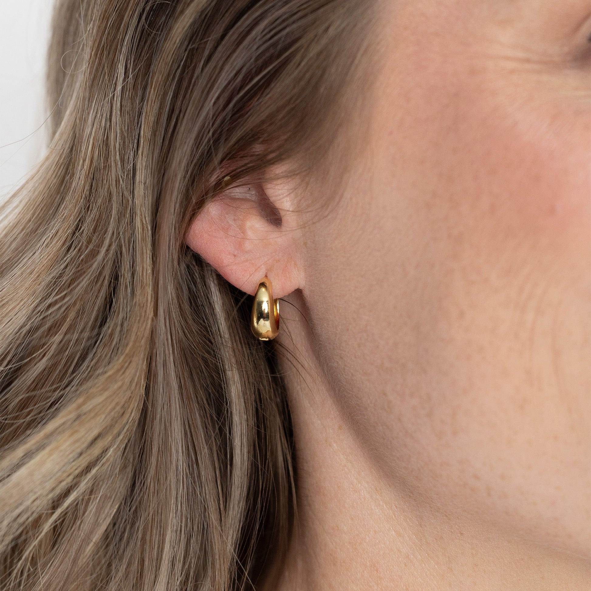 Add a splash of fun to your look with these Bubble Drop Huggies! Featuring a bold tapered design, these classic gold hoops bring a playful twist to everyday elegance. Perfect for turning heads and brightening any outfit with their charming shine.