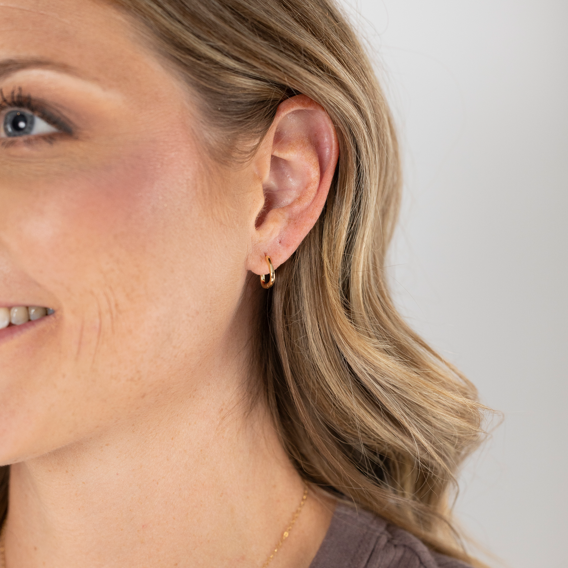 Add a touch of effortless charm with these Haley Huggies. Crafted from 14k gold-filled material, their sleek tapered design keeps things simple yet stylish—perfect for wearing every day or layering up for a night out. Lightweight and fun, these hoops bring a subtle sparkle that never goes out of style!