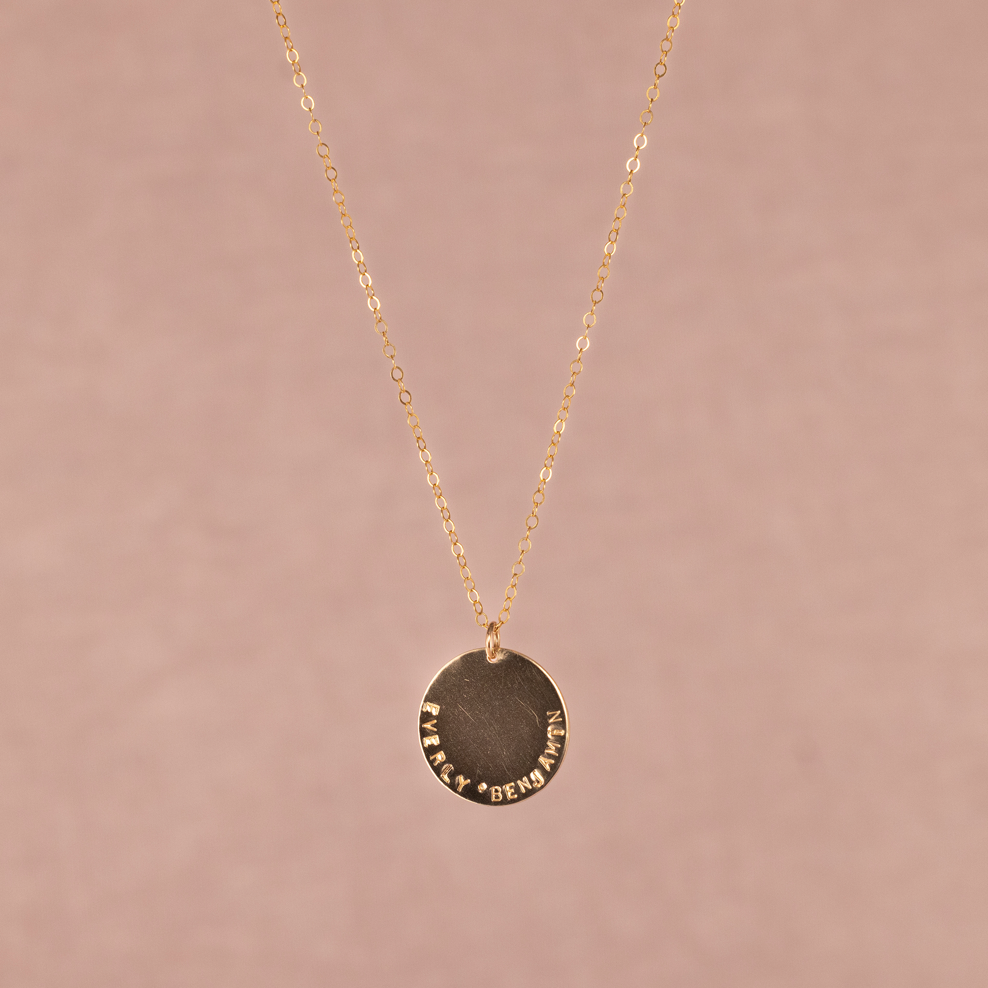 This custom disc necklace is the PERFECT gift! Customize it with any word, name, or date 15 characters or less. This necklace features a 3/4" hand cut disc with hand stamping made to order. We want you to LOVE your custom necklace, so we made this:
