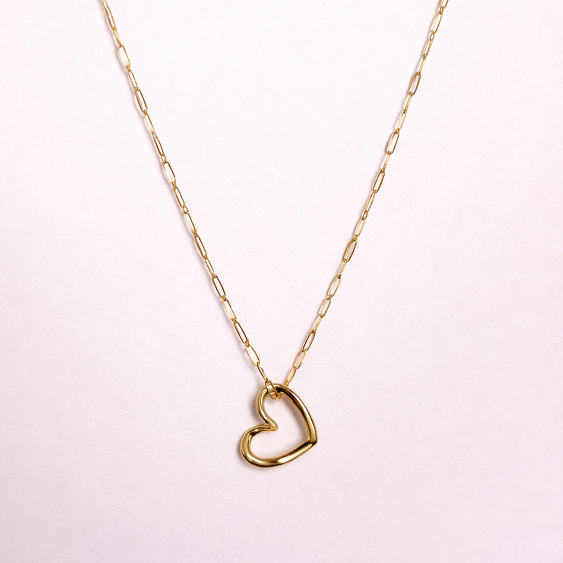 Show off your softer side with this whimsical wire open heart pendant. The graceful outline design floats effortlessly from the chain, creating an understated yet meaningful statement. Whether you're layering it with other pieces or letting it shine solo, this pendant brings instant warmth and personality to your look.