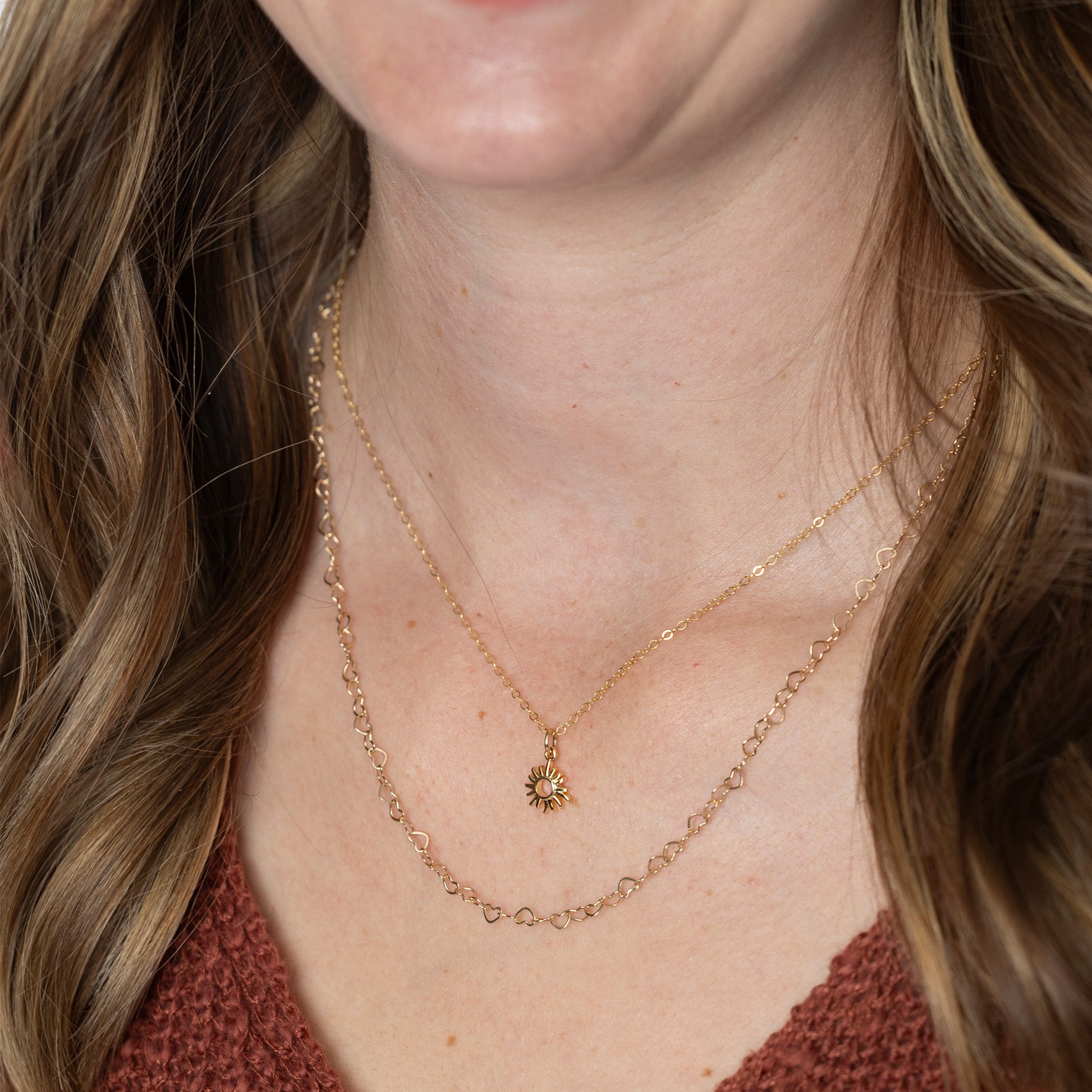 Brighten your day with the Sophie Pendant! Crafted from 14k gold filled metal, this charming sun burst design adds a playful pop of sunshine to any outfit. Perfect for those who love a little extra sparkle and fun flair.